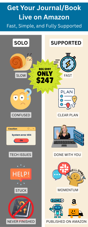Create and publish your journal, workbook, or planner on Amazon — with personal support every step of the way.